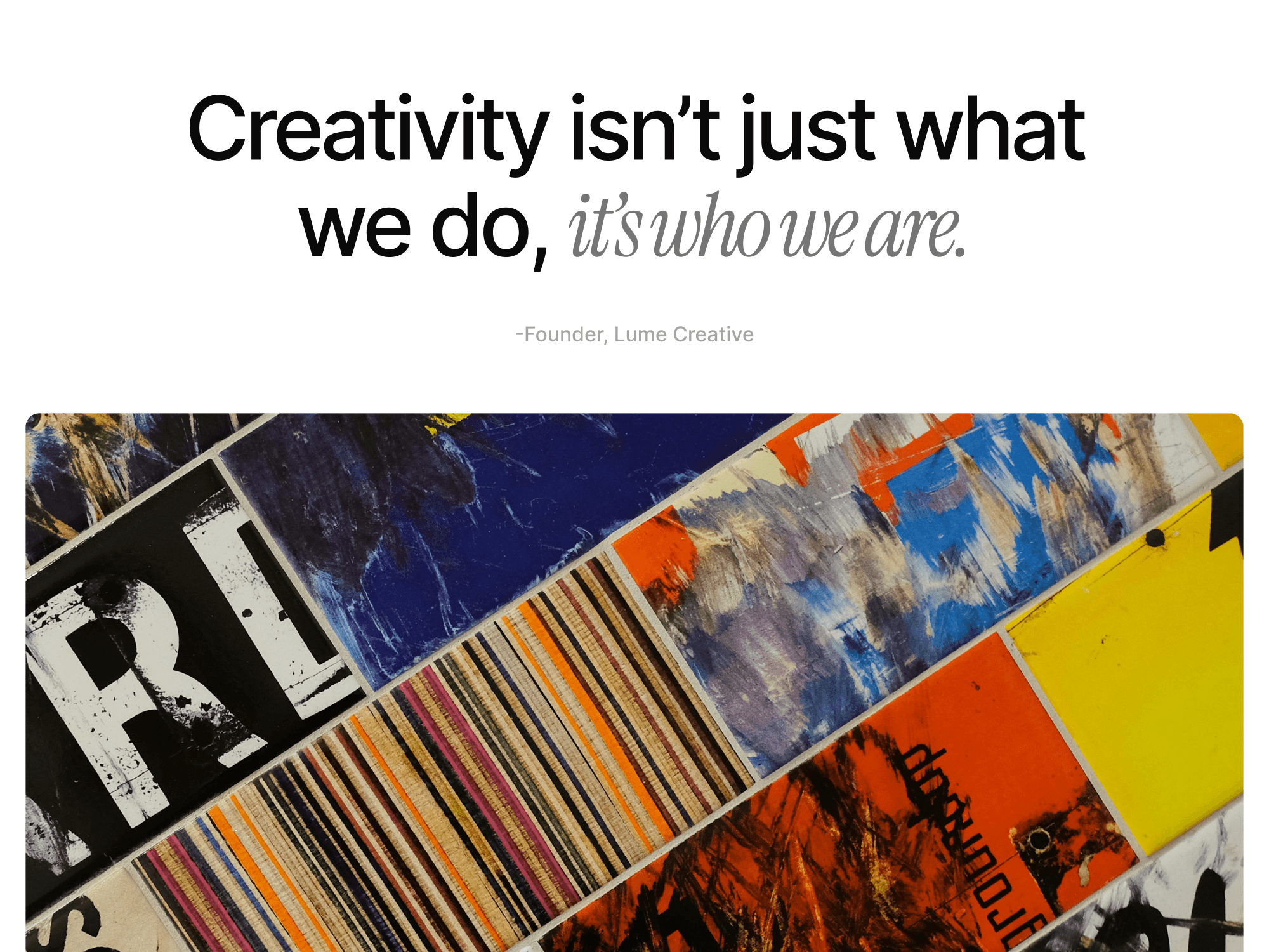 Lume Creatives is a full-service creative studio specializing in strategy, design, and storytelling for brands seeking a strong visual identity. The goal of this project was to build a clean, modern, and highly polished website that showcases their portfolio, communicates their value, and positions them as a premium creative partner for brands of all sizes.